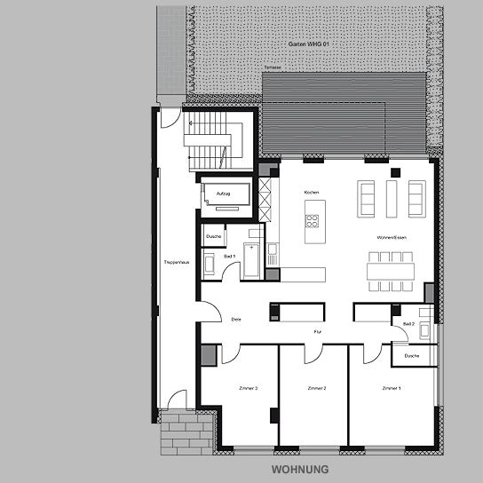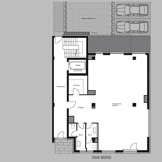 Ein Arbeitsplatz sollte immer auch ein Platz zum Leben sein. Die Erdgeschosswohnung der Oberlindau 80 kann beides. Als funktionale Büroräume mit Veranda und Blick ins Grüne. Oder als individueller Lebensraum. Auf Wunsch barrierefrei vom eigenen Parkplatz bis in die Wohnung.